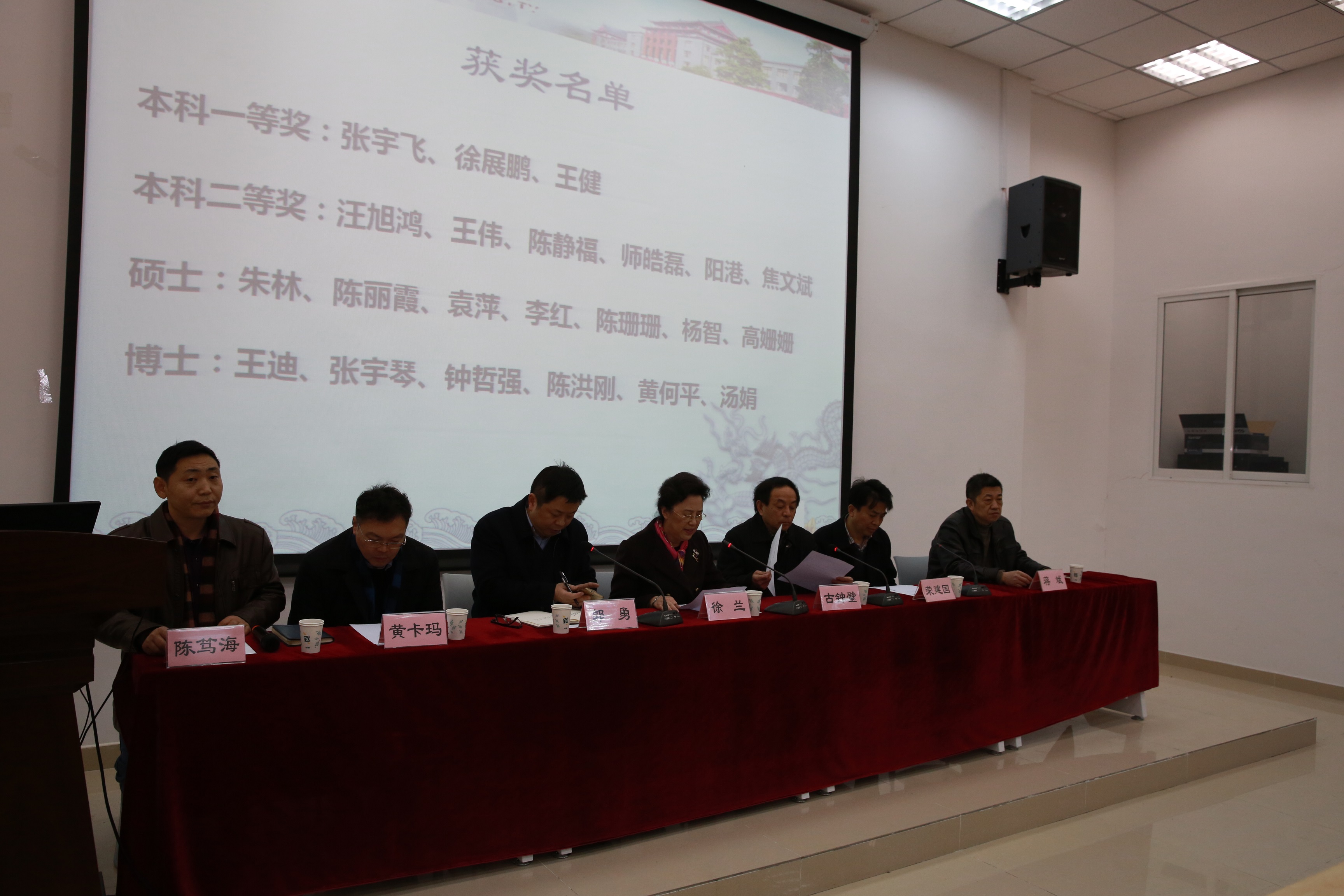 2016年12月30日下午1:00,“四川大学 华文奖学金”颁奖典礼在四川大学西五教附101报告厅顺利举行。四川大学党委副书记、纪委书记徐兰教授,四川大学退休教师、成都市人民政府参事、成都万江港利科技股份有限公司董事长古钟璧教授,四川大学校长助理、党委学生工作部部长、学生处处长郭勇教授,四川大学教育基金会秘书长荣建国,bat365在线体育登录党委书记蒋斌,院长黄卡玛教授,副院长周新志教授和院党委副书记陈笃海,成都万江港利科技股份有限公司总经理贺新先生出席了典礼。学院学生科全体老师,获奖学生和部分学生代表参加了此次颁奖会,颁奖典礼由院党委副书记陈笃海主持。