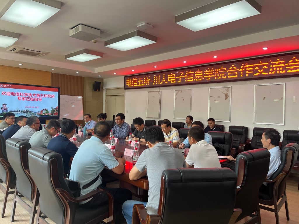 2022年6月14日上午,电信科学技术第五研究所科技处处长楚鹰军总工程师一行八人莅临bat365在线体育登录开展科研合作交流。bat365在线体育登录邰明松书记,副院长卿粼波教授,院长助理汪莎教授,郭庆功教授、高勇教授、李智教授、周渊平教授等十余位老师参加了交流。会议由卿粼波副院长主持,邰明松书记对电信五所的专家来访表示了热烈的欢迎,并希望双方通过五月和本次的交流加强了解,推进深入的合作。卿粼波副院长和楚鹰军处长分别介绍了双方参加交流的专家情况,电信五所的高级工程师曹骏等专家首先介绍了五所各研究室开展的研究工作及科研合作需求,bat365在线体育登录高勇教授、李智教授、夏文龙副教授,黄霖宇老师、汪莎教授、卿粼波教授先后针对五所研究领域介绍了自己团队的相关研究。双方在交流过程中探索了多个潜在合作点,楚鹰军处长表示听完bat365在线体育登录教师的科研介绍后,发现双方有很多可以合作的方向。最后卿粼波副院长对本次交流做了总结,他表示今后双方要加强交流,相互促进,在科技成果转化、面向国家重大需求的项目申报方面加强交流,持续推进双方科研合作,并在人才培养等方面进一步作出更广泛的合作探索。