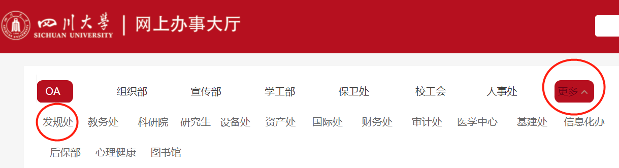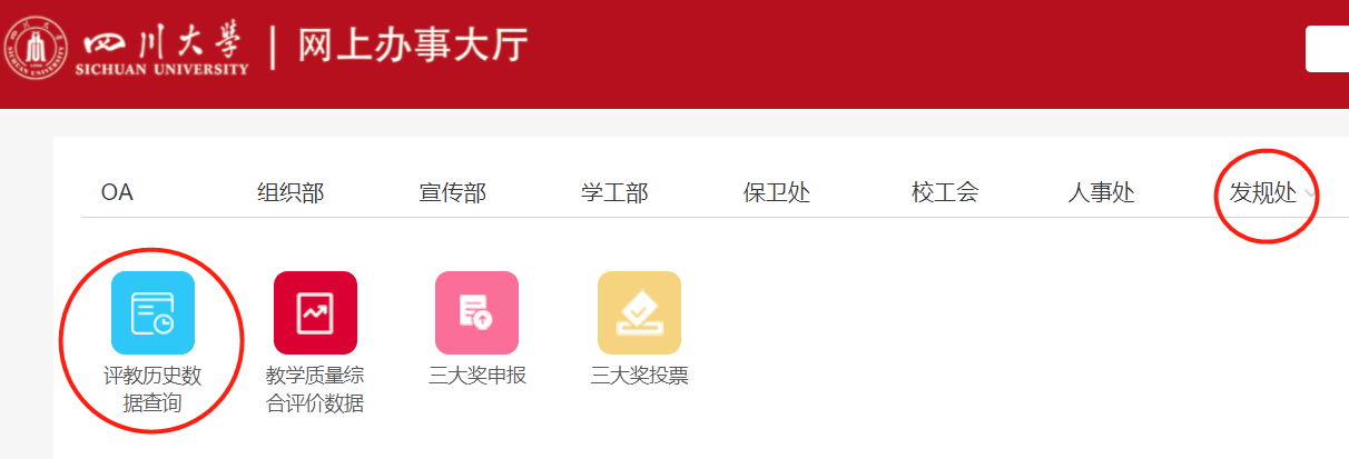 Ⅱ.进入网上办事大厅依次点击红圈中的更多”——“发规处”——“评教历史数据查询图标。