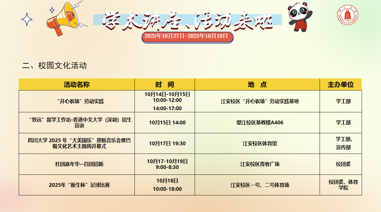 2025年10月11日-2025年10月19日学术讲座、活动安排
