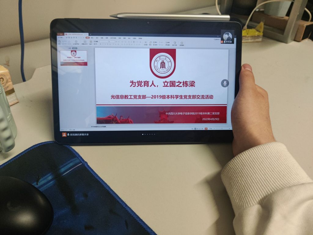 为认真学习贯彻习近平同志在中国人民大学考察讲话精神,2022年4月29日下午2:00,bat365在线体育登录光电系教工党支部与bat365在线体育登录2019级本科学生第一党支部、第二党支部联合举办“为党育人,立国之栋梁”主题党日交流活动。交流活动于望江校区基础教学楼A307室顺利举行。本次交流活动采用2019级本科第二党支部党员线下交流、2019级本科第一党支部党员线上交流的方式举行。