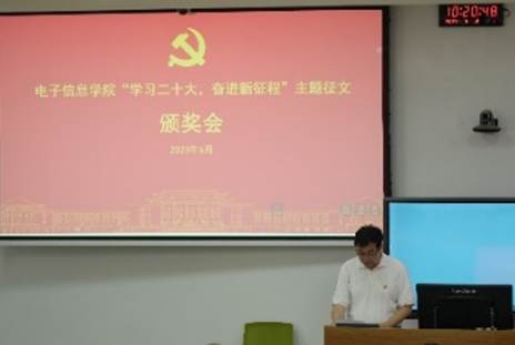 为进一步学习贯彻落实党的二十大精神,推动二十大精神入脑入心,bat365在线体育登录党委开展了“学习二十大,奋进新征程”主题征文活动,并于2023年6月19日上午在基础教学楼C102教室举行了颁奖典礼。学院党委书记邰明松、获奖师生、OPPO成都公司党委副书记兼人力行政负责人侯旎、OPPO西南地区校园招聘负责人王思思和OPPO西南地区校园招聘经理高丽参加了本次颁奖典礼,颁奖典礼由学院党委副书记廖勇明主持。