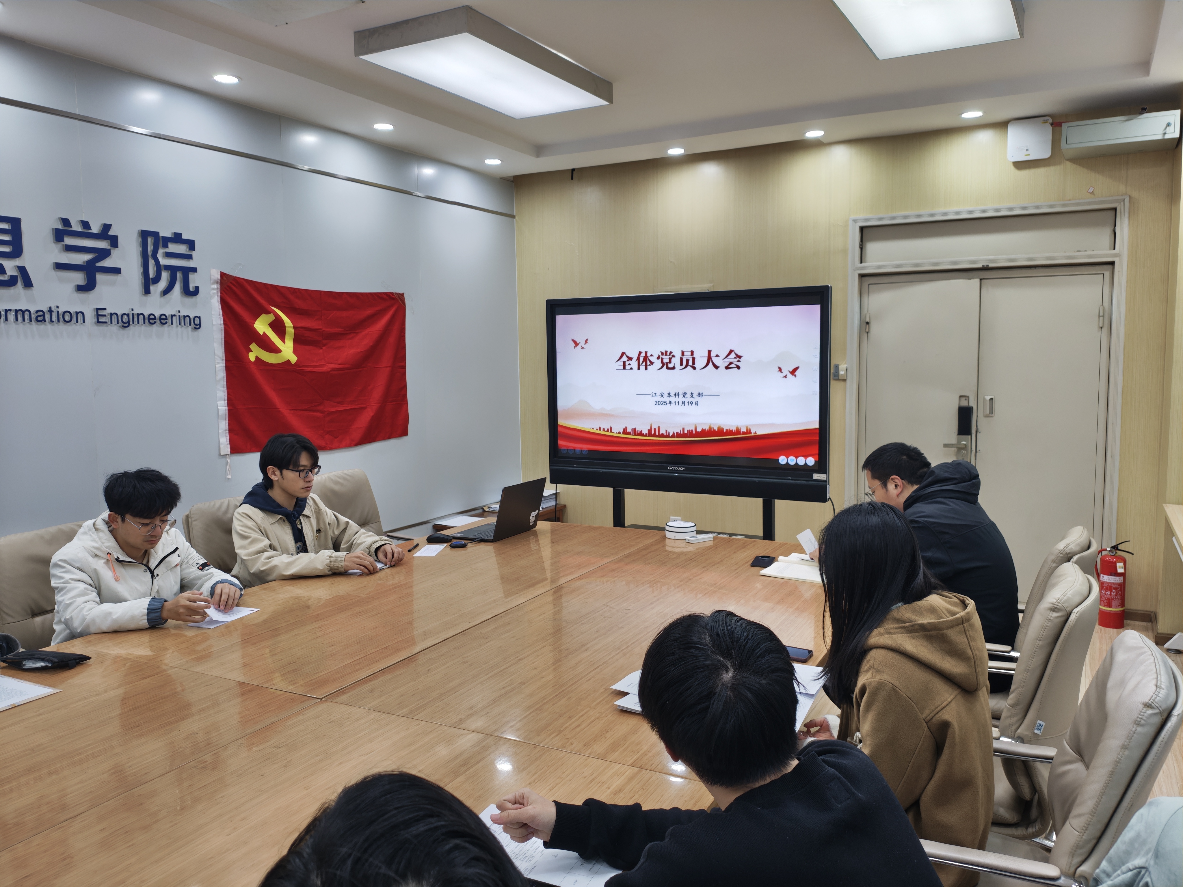 为认真落实党员发展工作,加强基层党组织建设,2025年11月19日,江安本科党支部在望江校区基础教学楼A座110B会议室召开全体党员大会,主要议题为讨论接收新预备党员。支部书记申鑫同志主持会议,支部全体党员、预备党员及发展对象参会。
