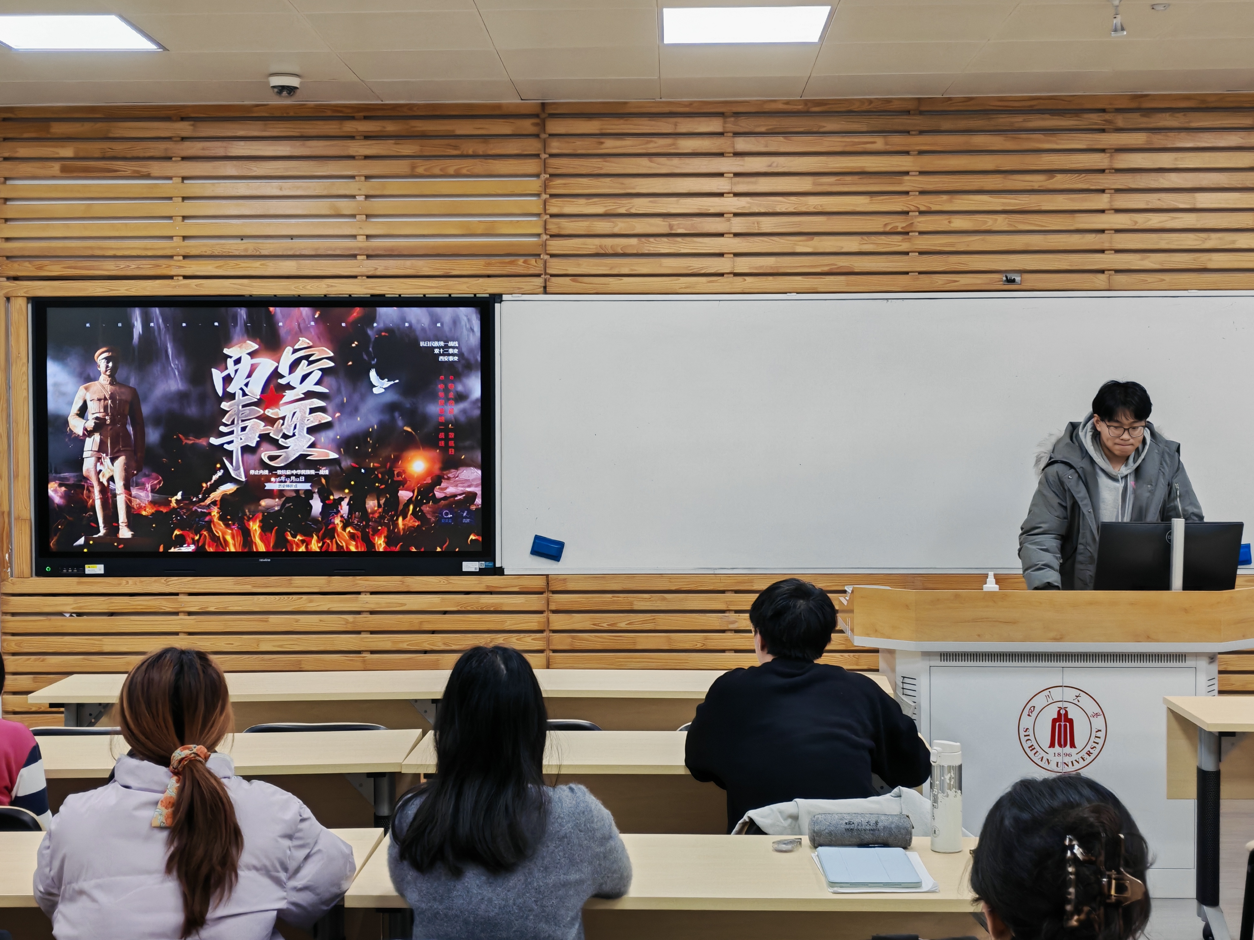 随后,白陈宏羿小组分享了中国寄生虫病防治史,展示了中国共产党的领导下新中国面对寄生虫病的科学防治策略。马梓轩小组介绍了焦裕禄在兰考带领群众治沙、治水、治碱,身患重病仍坚守一线的事迹,其精神丰碑永立人心。张博涵小组解析西安事变,回顾了张学良、杨虎城以民族大义兵谏蒋介石抗日的壮举。最后,邰诗熳小组讲述巾帼英雄秋瑾的故事,她投身革命、为妇女解放与民族独立呐喊牺牲,用革命先烈的精神激励同学