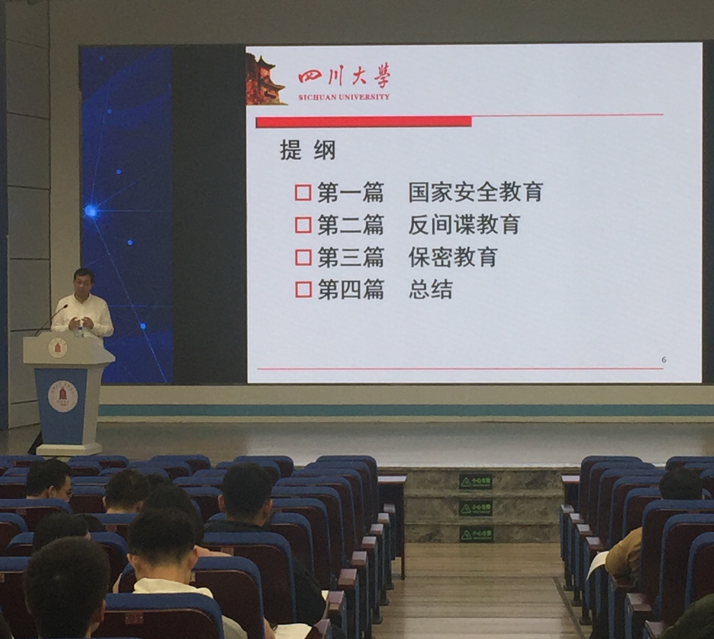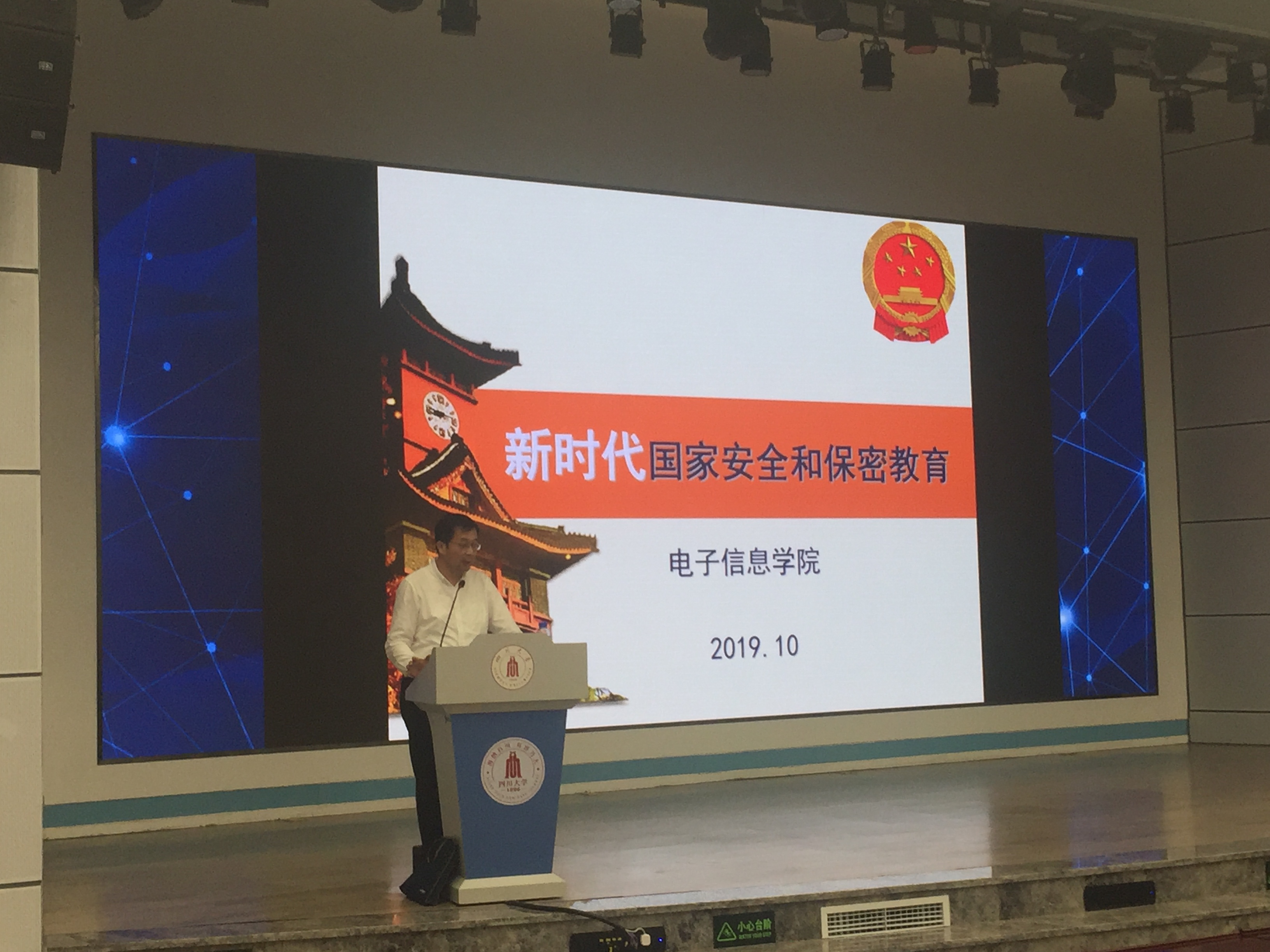 2019111日下午,在望江校区东三教学楼演播厅,bat365在线体育登录党委书记邰明松同志为学院2016级部分本科生讲授了题为《新时代国家安全和保密教育》的专题思想政治理论课。