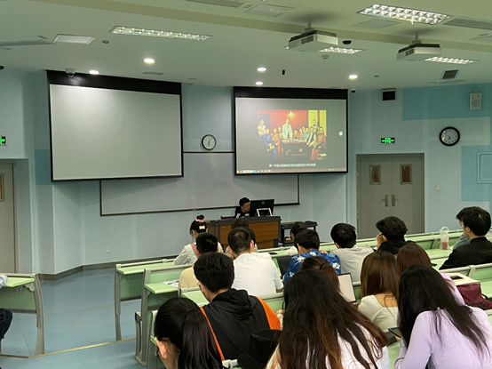 在通过PPT讲解党史的同时,还给同学们穿插放映了新民主主义革命时期的党史混剪视频,通过观看视频,同学们都深刻认识到红色政权来之不易、新中国来之不易,深刻认识到一个强有力的领导核心对于党和国家事业的极端重要性,深刻认识到中国化马克思主义既一脉相承又与时俱进的理论品质,深刻认识到党在斗争实践中形成的一系列光荣传统和优良作风的时代价值。