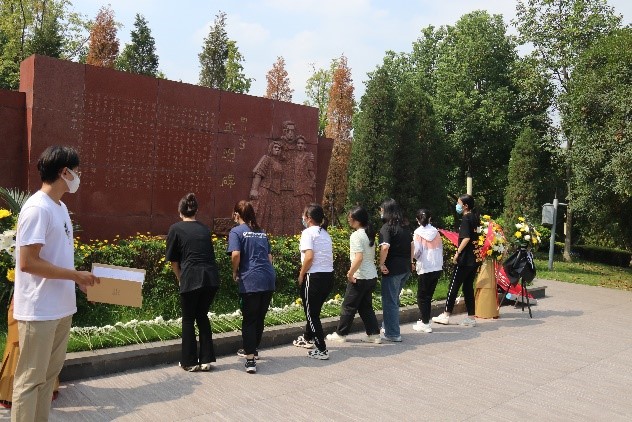 为了弘扬烈士精神,缅怀烈士功绩,培养公民爱国主义、集体主义和社会主义道德风尚,激发实现中华民族伟大复兴中国梦的强大精神力量,2022年9月30日下午两点,电子信息的同学们在2022级辅导员朱婧老师、2022级兼职辅导员王清霞与2021级兼职辅导员孔洁老师带领下,满怀崇敬的心情来到烈士纪念碑前遥寄哀思,纪念英勇献身的革命烈士。