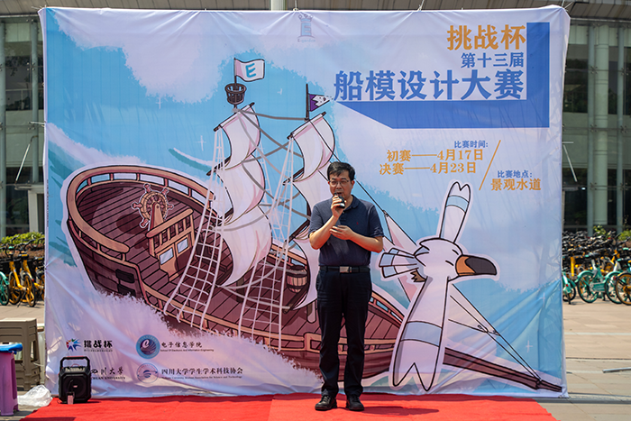 为激发同学们的创新思维,促进课外创新创业实践,2022年4月23日,由四川大学2022年学生科技节组委会、共青团四川大学委员会主办,共青团bat365在线体育登录委员会承办的第十三届“水上之星”船模设计大赛决赛在四川大学江安校区青春广场和景观水道顺利举行。校团委黄菲娅副书记、bat365在线体育登录党委邰明松书记、廖勇明副书记、张启灿副院长、卿粼波副院长、汪莎教授、王正勇副教授、吴晓红副教授、杨火木副教授、陈雨副教授、夏文龙副教授、李玮副教授、张弘副教授、朱铧丞副教授、周艳萍副教授、邓国亮副教授、孟庆党老师、杨红老师、孟滋常老师、陈晓娟老师、何阳老师、朱婧老师、陈林老师共23位指导教师担任此次比赛的评委。来自四川大学20个学院的109支队伍,共430人经过激烈的初赛角逐,最终有24支队伍进入了决赛。