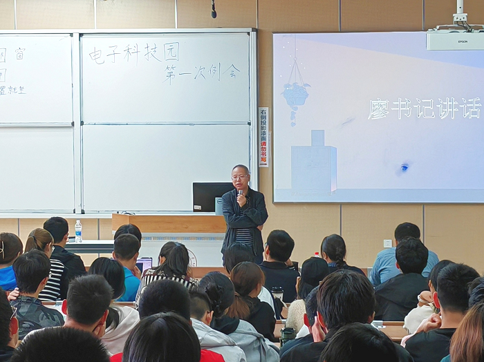在电子科技园的首次例会上,各个部门进行了工作总结并说明了干事们的考评规定。党委副书记廖勇明,bat365在线体育登录辅导员陈林老师和申鑫老师也出席并做了重要指导。首先,申鑫老师、陈林老师依次发表了讲话,从社团定位、干事职责等方面对干事们提出了几点要求。其次,主席团及各个部长团进行了简单的介绍和九月、十月的工作总结,申骏宇学长对干部干事考评准则进行了详细说明。最后,廖书记对本次例会进行总结,对科技园的定位及性质做了详细说明,表达了对电子科技园作为学术性社团的认可与肯定,号召各位干事们,在信心和兴趣的引导下,积极参与社团活动,提升自我能力,再创科技园辉煌。