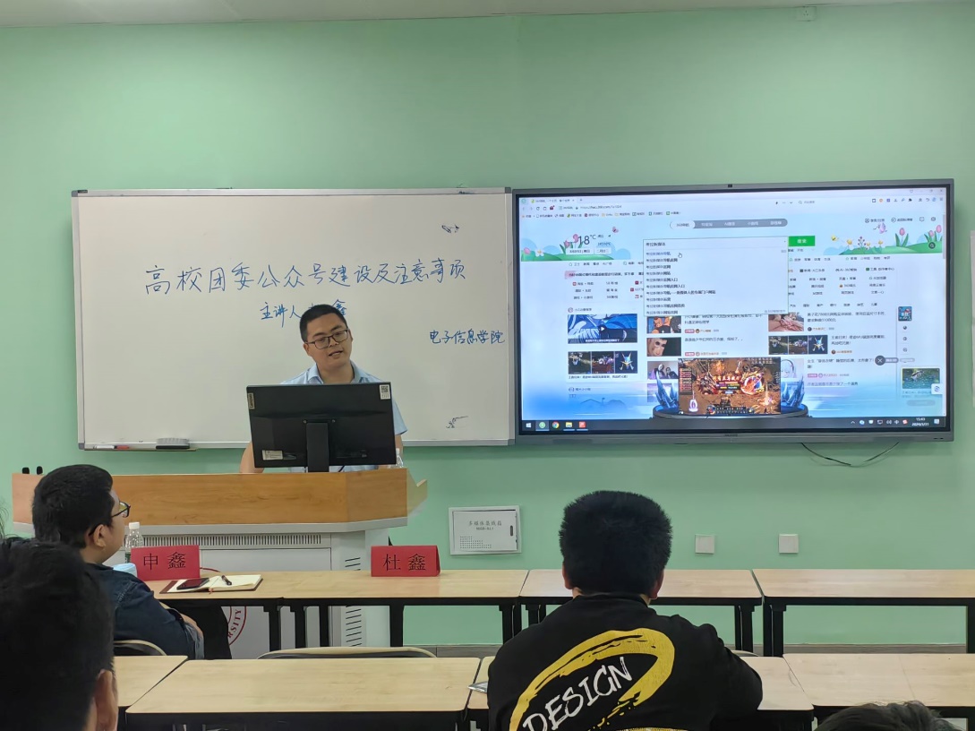 为提高院团委宣传工作质量,3月31日下午,bat365在线体育登录“高校团委公众号建设与注意事项”新媒体培训讲座于江安校区综合楼B204教室举行,由团中央“青年讲师团”讲师杜鑫主讲,院团委副书记申鑫、兼职辅导员肖嘉敏和院学生组织宣传工作主要负责同学参与。