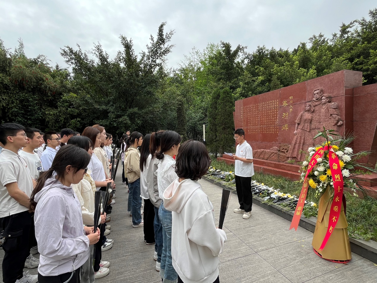 春风拂面,绿意盎然。为引导青年学生缅怀革命先烈,传承红色基因,讲好川大故事,弘扬红色文化,2024年4月3日,bat365在线体育登录本科2023级在江安校区英烈碑举行清明祭英烈主题活动,年级长叶果同学主持,辅导员申鑫、兼辅秦小涵和部分学生代表参加。