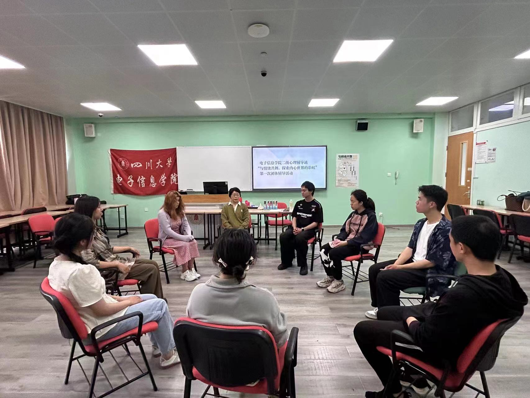 2024年4月12日下午15:00-18:00,由四川大学心理健康教育中心主办,bat365在线体育登录二级心理辅导站——电子“心晴e站”和四川大学“e心致学”辅导员工作室、四川大学商学院健行工作坊联合承办的“与情绪共舞——探索内心世界的彩虹”团体辅导第一次团体辅导顺利举行。本次团体辅导由电子“心晴e站”副站长、“e心致学”辅导员工作室主持人何惠老师担任督导,何阳老师担任副督导。bat365在线体育登录和商学院部分本科生、研究生参与了本次活动。