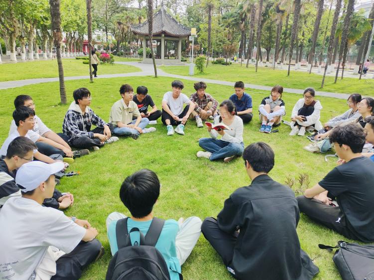 随后,同学们来到纪念馆门前的草坪上,共同阅读经典红色小说《红岩》。卢欣然和李昕怡两位同学和大家分享了自己感悟深刻的章节,并发表了感想。她们表示,通过阅读《红岩》,更加深入地了解了革命先烈的斗争历程和崇高精神,也更加珍惜今天的幸福生活。听完分享后大家也纷纷表示要以伟大的革命先烈为榜样,谱写属于新一代人的川大篇章。