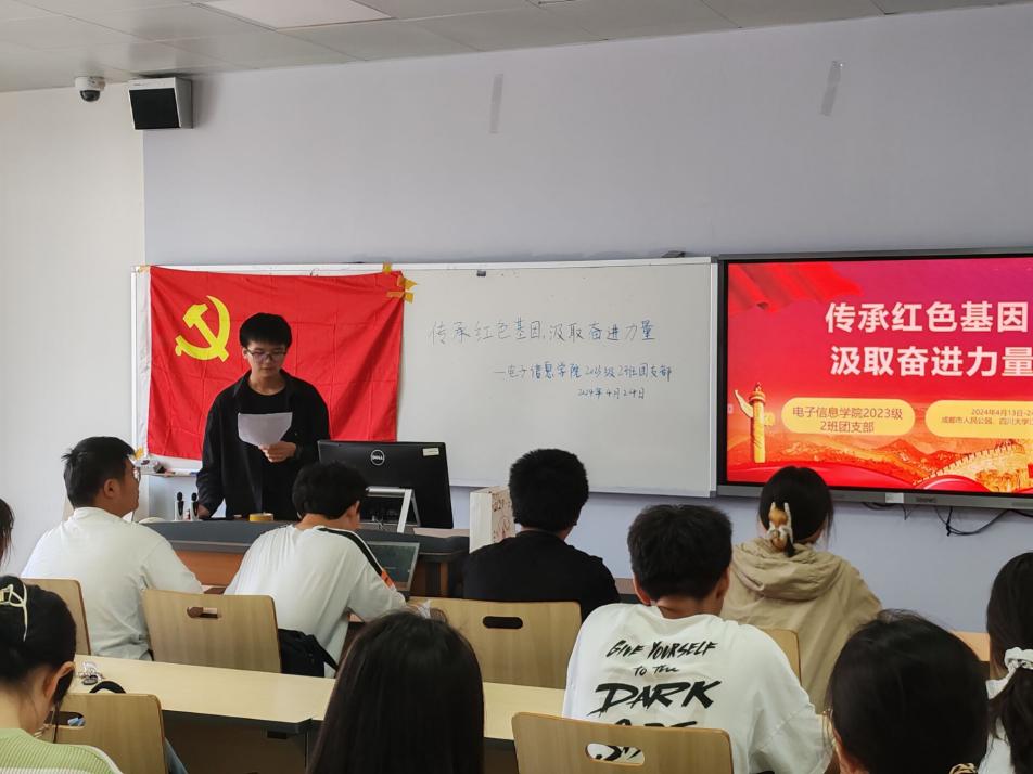 为深入学习宣传贯彻党的二十大精神,巩固深化团员和青年主题教育成果,培养青年的社会责任感和奉献精神,在第九个全民国家安全教育日来临之际,组织开展国家安全理论宣讲活动,加强同学们对国家安全相关知识的了解,同时培育同学们“爱读书、读好书、善读书”的学习习惯,促进班级学风建设,营造浓厚书香校园氛围,2024年4月13日-24日,bat365在线体育登录本科2023级2班分别于成都市人民公园、四川大学江安一教A505开展了以“传承红色基因,汲取奋进力量”为主题的团日活动,2班33名团员和3名青年参加。