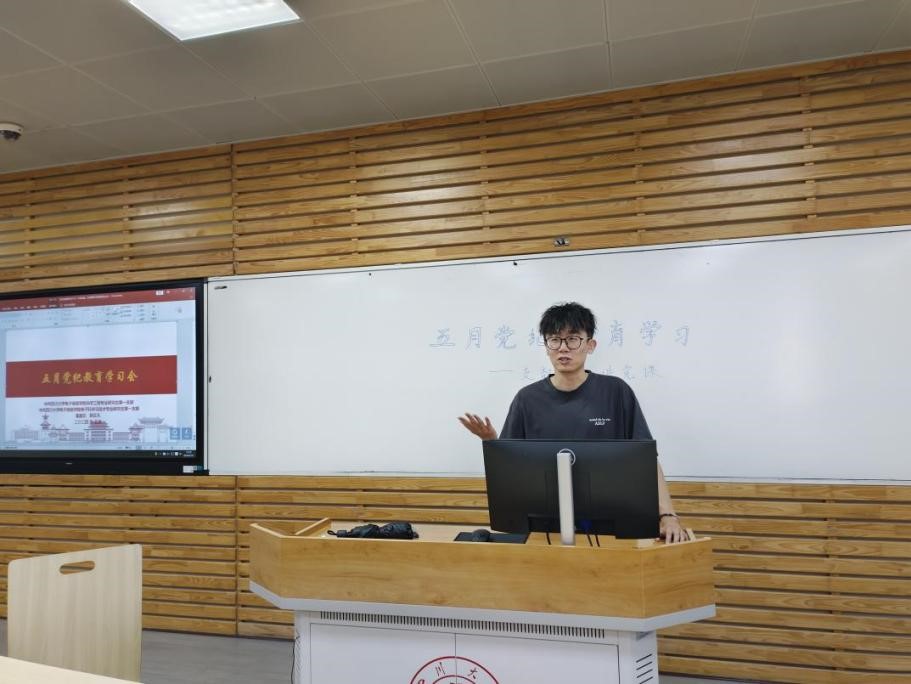 中共bat365在线体育登录2023级硕博第一、第四党支部于2024年5月31日下午16:00至17:00成功开展了“支部书记讲党课暨五月党纪教育学习”主题党日活动。本次主题党日活动在四川大学望江校区基础教学楼A座604教室举行。本次活动由2023级硕博第一、第四党支部的支部书记郭贝凡、秦嘉忆同志主持,2023级硕博第一、第四党支部全体党员参加。