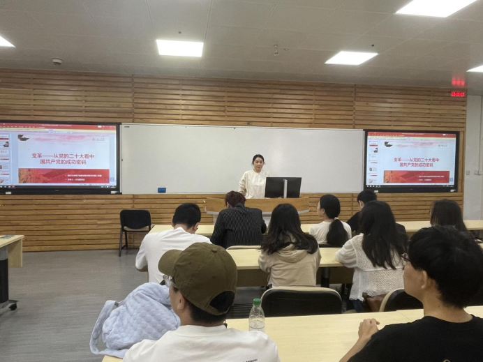 为了党员更加深入学习领会习近平新时代中国特色社会主义思想,提高思想理论水平,提高政治素质和道德品质,2024年6月4日上午10点,bat365在线体育登录20级党支部第二支部在基础教学楼A座A308开展了党课学习主题活动。由学院的计玉娟书记作为主讲人,围绕着变革,向党员们讲述了题为“变革——从党的二十大看中国共产党的成功密码”的一堂富有深远意义的党课。