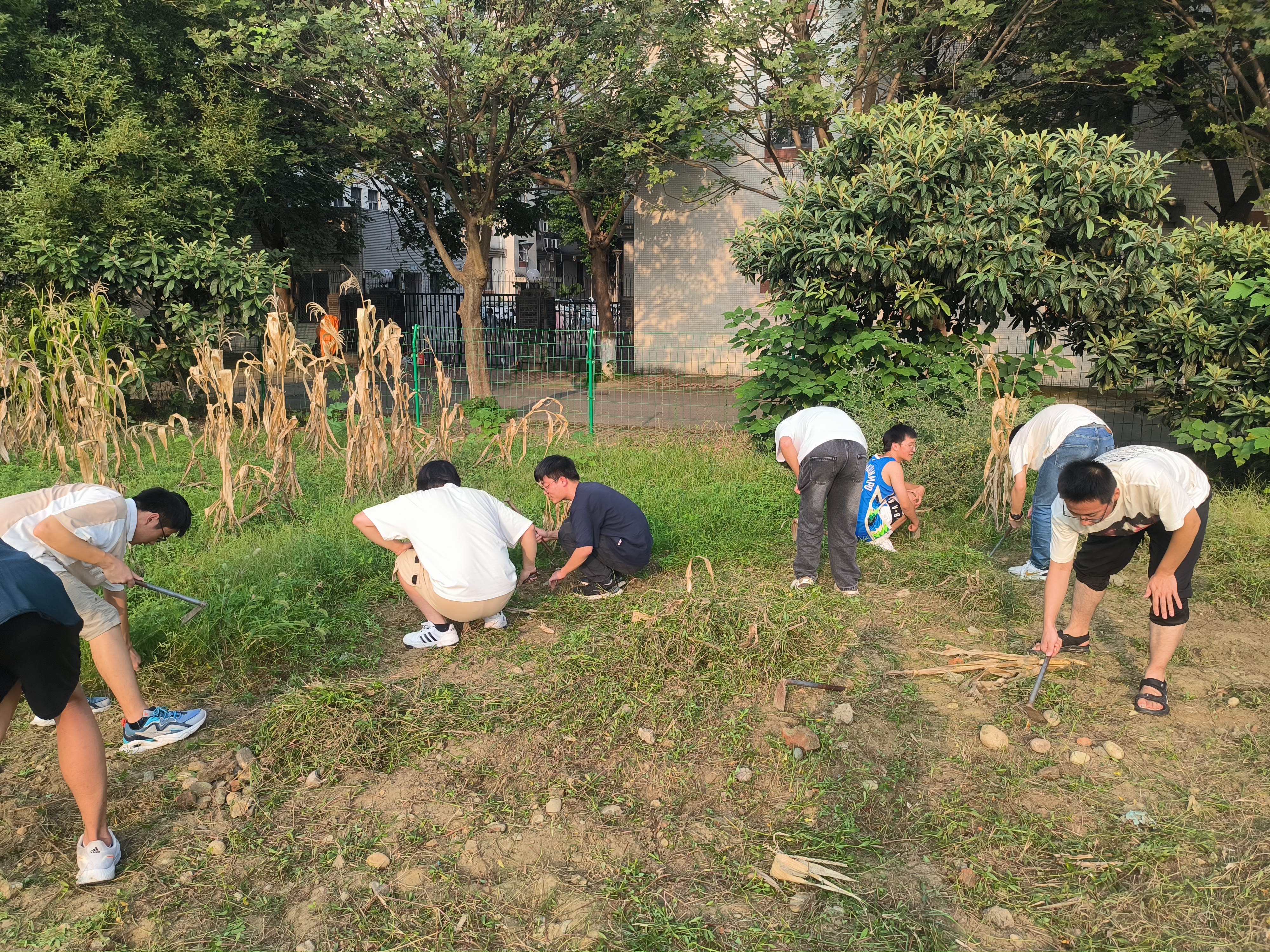 任务开始后,同学们手持锄头,认真清理杂草。阳光倾泻在他们的脸上,汗水顺着额头流下,但没有人抱怨,反而在劳动中欢声笑语,互相鼓励。有的同学收集着刚割下的草,将其堆放在了指定地点。还有的同学则在田地里仔细寻找,确保每一块石头都不被遗漏,以免影响后续的耕种。