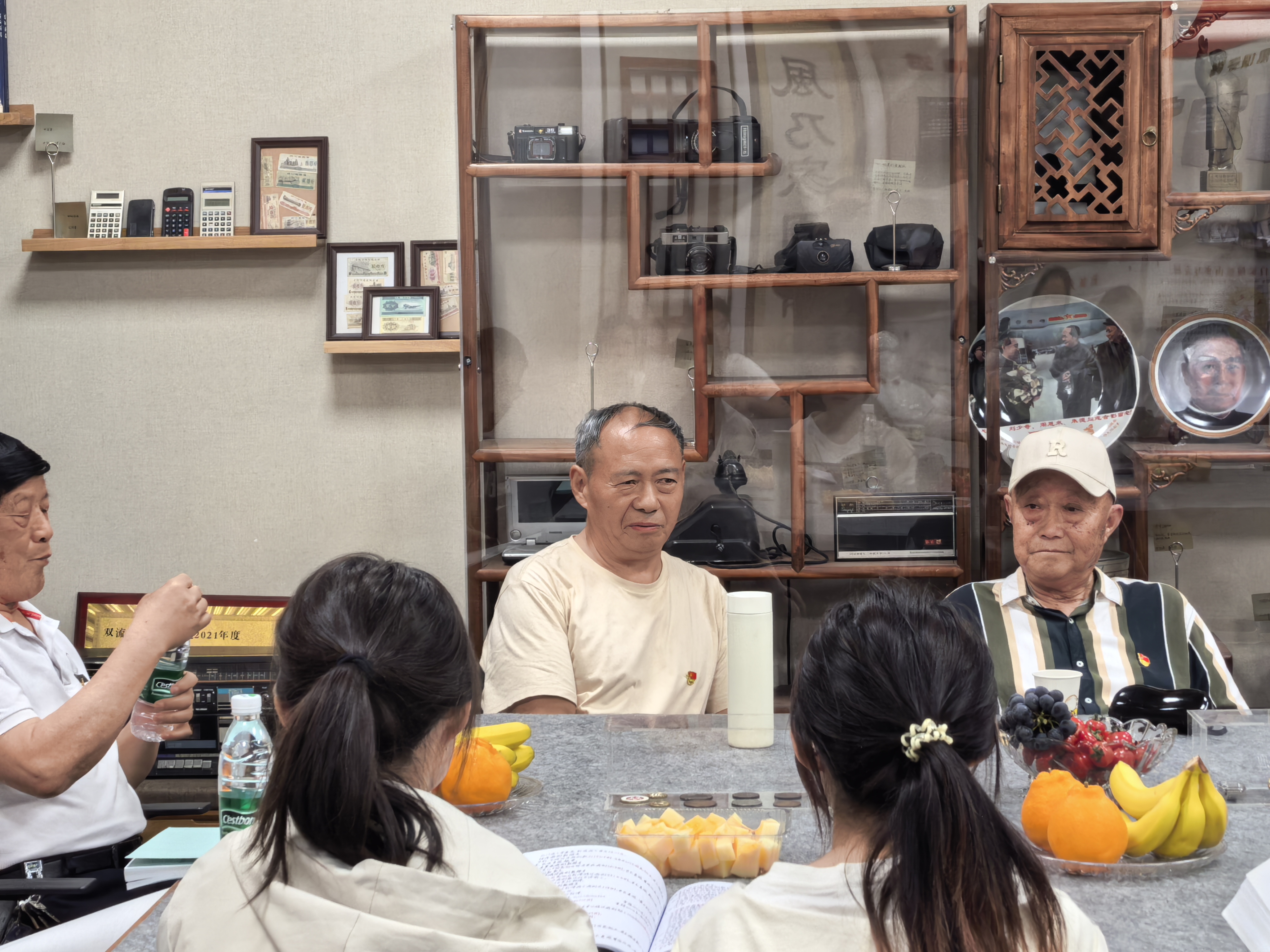 图为六位老党员分享交流