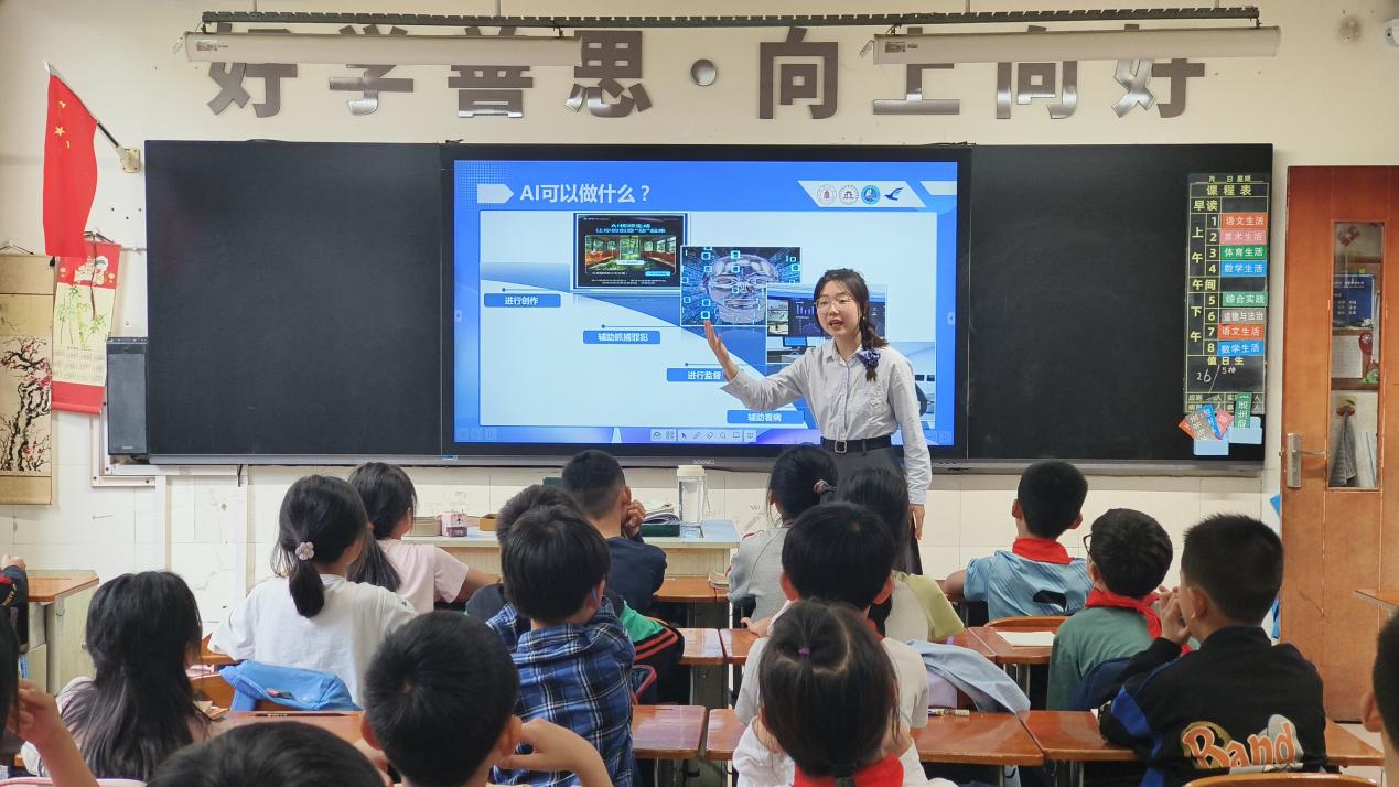 图为宣讲员谭晶晶对人工智能进行介绍