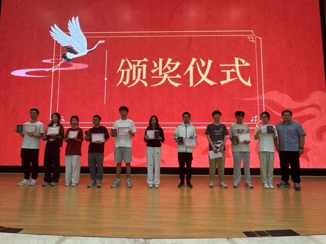 文体部以独唱《小宇》《我们》作为压轴节目,为整场活动画上了圆满的句号。表演者将歌曲中的情感表达得细腻而动人,引发了全场观众的共鸣,让现场氛围达到了一个新的高潮。在活动尾声的颁奖环节,学院对过去一年团学工作中表现突出的个人进行了表彰,申鑫老师为获奖同学颁发荣誉证书,以肯定他们的辛勤付出与卓越贡献。颁奖结束后,全体参会人员进行了合影留念,记录下了这一难忘的时刻。