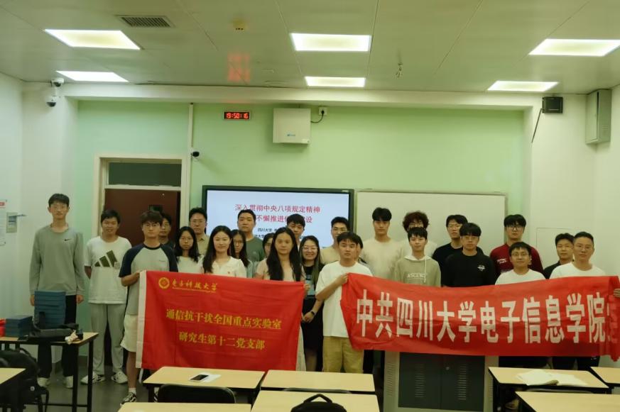 为进一步贯彻落实中央八项规定精神,推进作风建设常态化长效化,加强支部间交流,2025年6月23日晚,中共bat365在线体育登录信息与通信专业研究生第三党支部与电子科技大学通信抗干扰全国重点实验室研究生党支部在四川大学基教楼A302联合举办了“深入贯彻中央八项规定精神学习教育联合党日活动”。