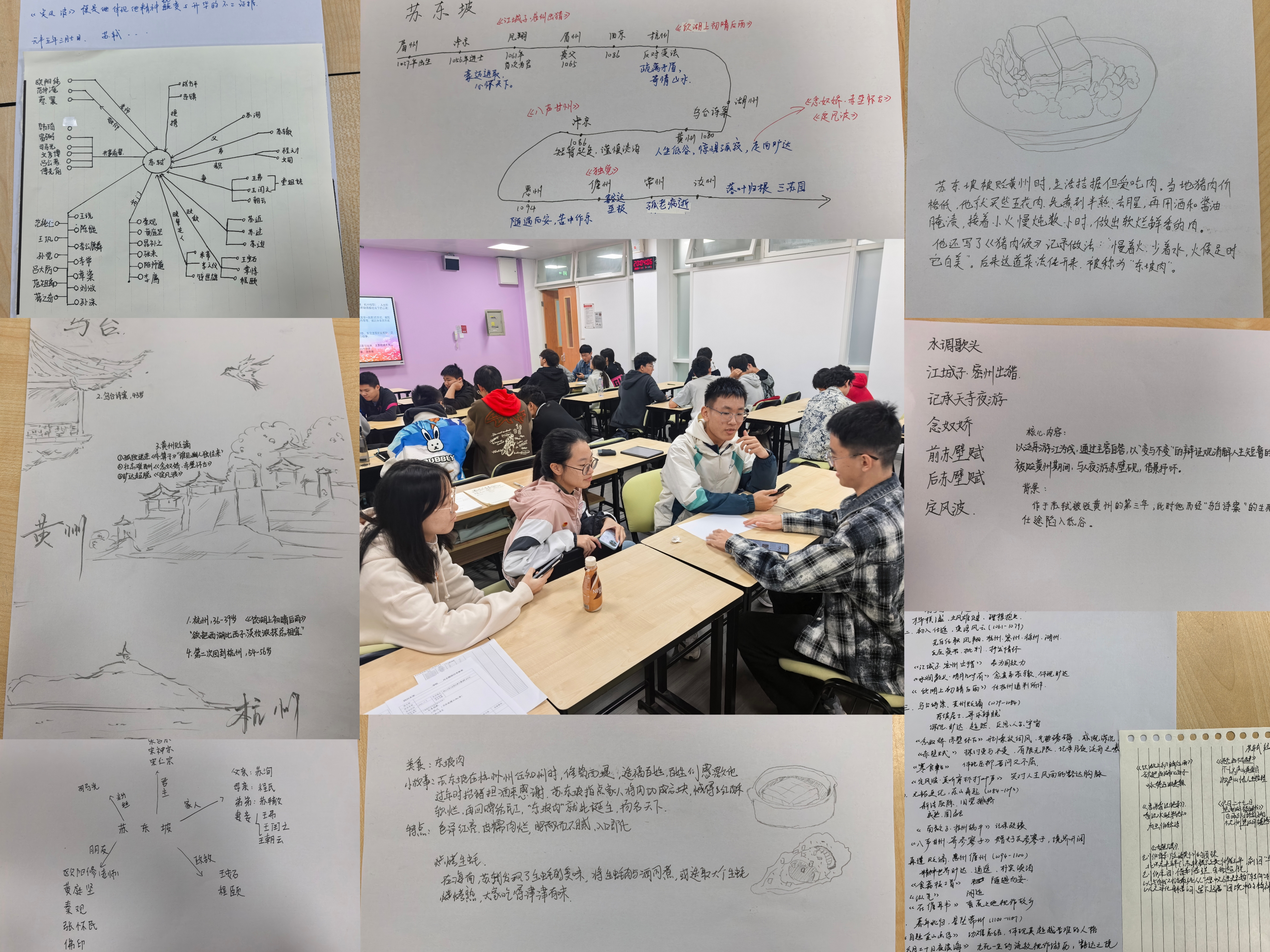 随后,团员们以小组为单位开展《苏东坡新传》阅读环节,通过思维导图形式梳理苏东坡创作作品、研发美食、人际关系与仕途起伏。增加了阅读的趣味性,使团员们对苏东坡有了更深刻的理解。