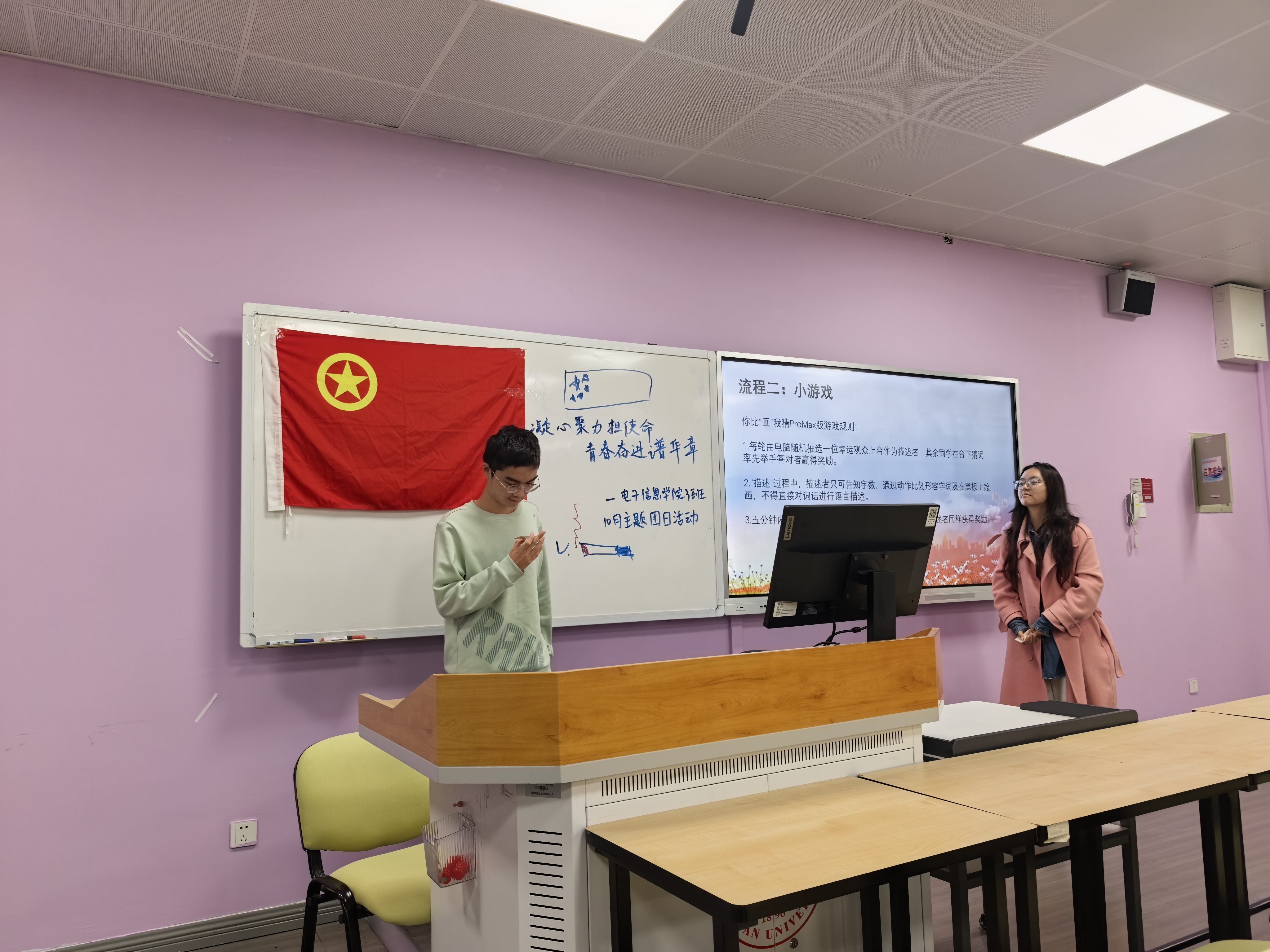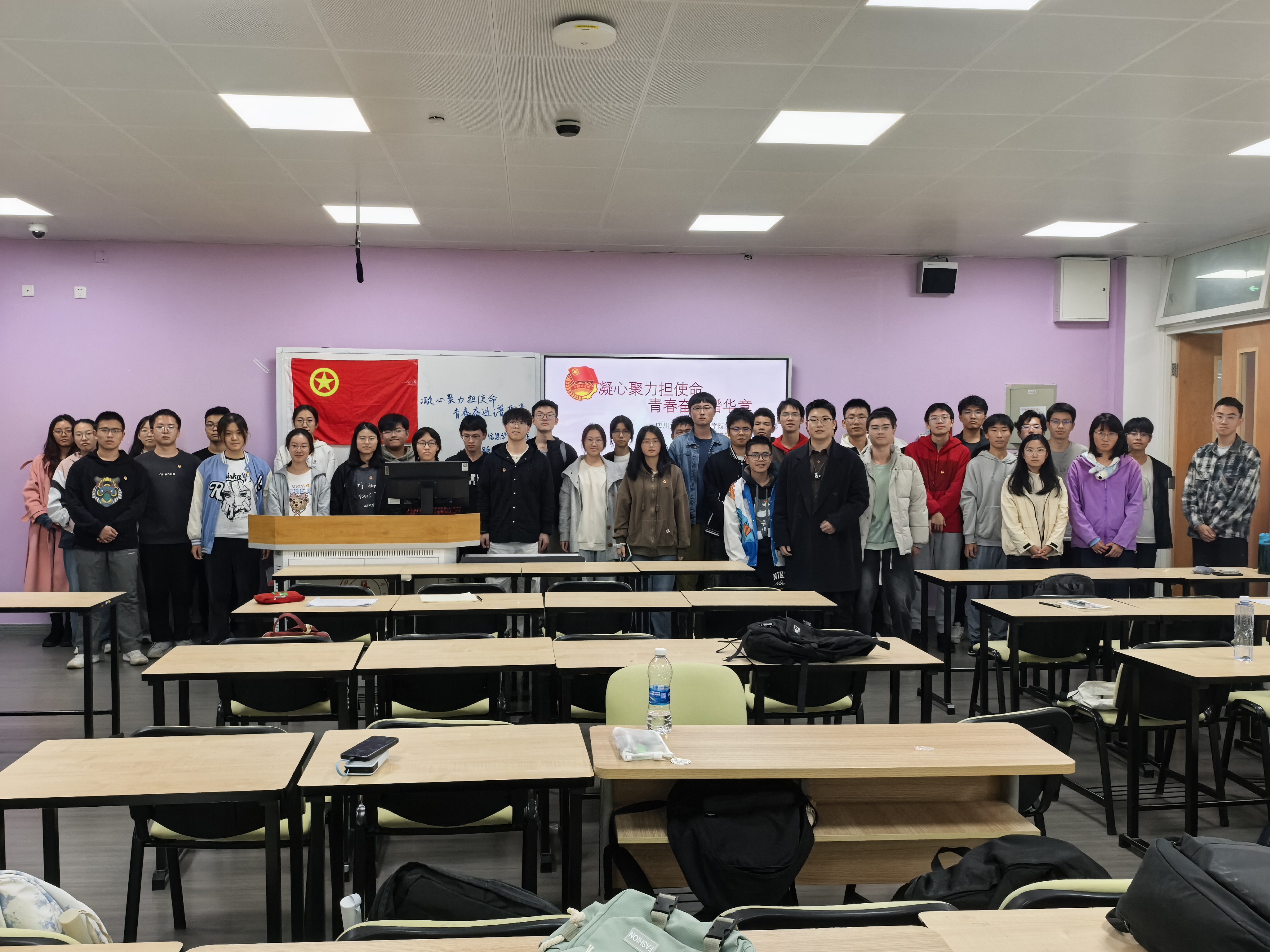 为引导团员青年高擎爱国主义伟大旗帜,厚植爱党、爱国、爱社会主义的情感,树立高度的民族自尊心和民族自信心,争做爱国主义精神的坚定弘扬者、实践者和传播者,提升团员先进性,增强基层团组织活力,11月7日晚上7点,四川大学电子信息学院2025级3班团支部于四川大学江安校区综合楼B座604教室开展了“凝心聚力担使命,青春奋进谱华章”主题团日活动。