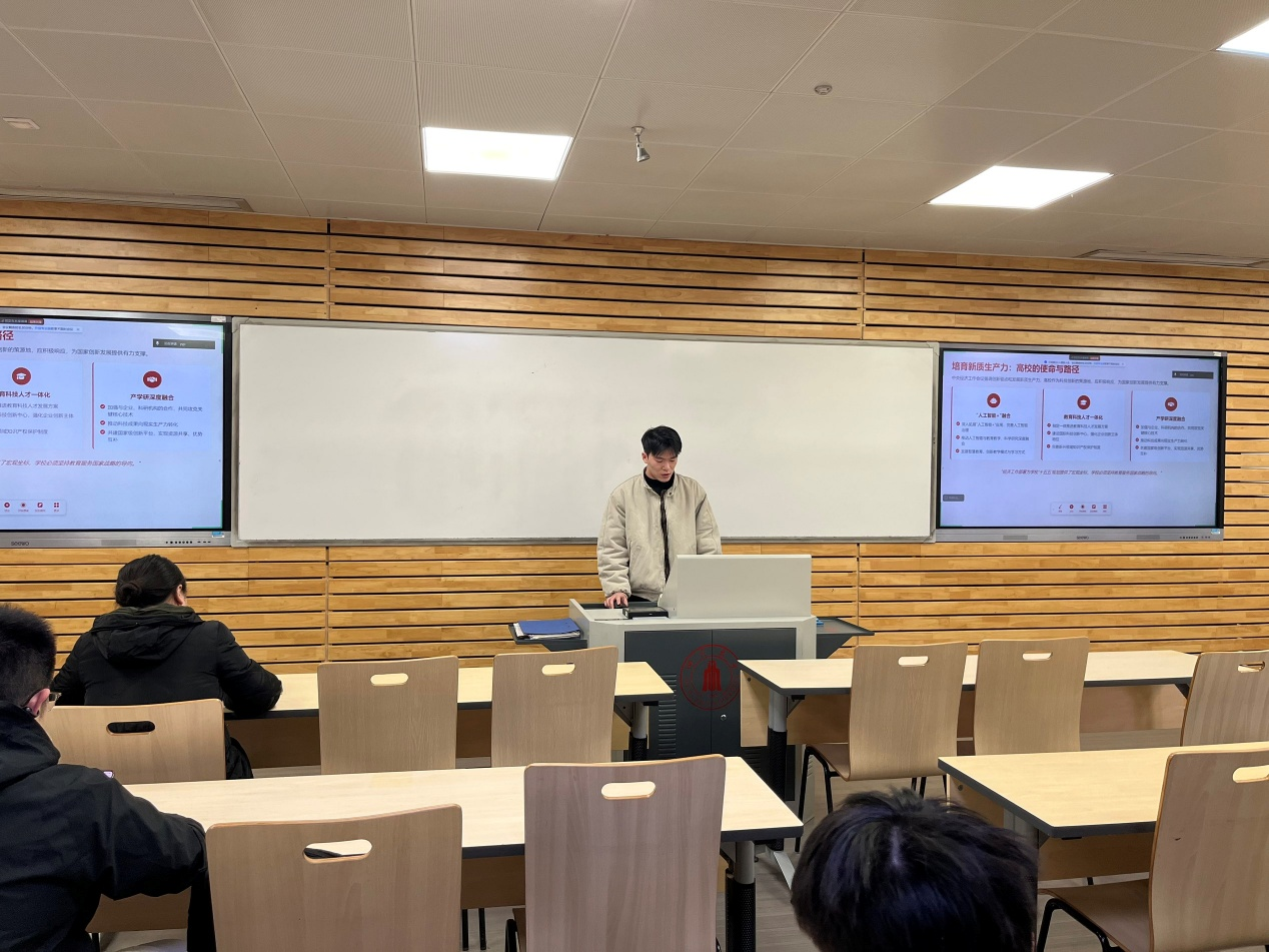 会上,与会党员围绕习近平总书记近期重要讲话精神开展了系统深入的交流研讨。杨鸣同学结合自身学业成长,从理论学习的指导意义、“三全育人” 的成长浸润、专业学习服务国家战略的实践路径等方面,分享了对学校发展布局的理解。他表示,“理论指引、育人导向、使命担当” 的核心要求,是青年学生成长的 “指南针”—— 作为理工科学生,既要在理论学习中深刻把握国家发展方向,将党的创新理论内化为专业学习的强大动力;也要在 “三全育人” 的培育中,以 “德智体美劳全面发展” 为目标夯实自身本领;更要积极融入产教融合与科技攻关实践,在核心技术突破与成果转化中找准专业定位,使个人学业成长与学校服务国家战略的使命同向同行,以专业能力和实际行动响应“科技自立自强” 的时代要求。