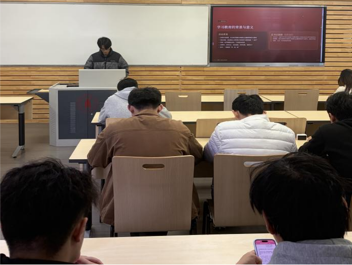 学习会上,江志文同学首先作专题分享。他结合当前发展阶段,分析了牢固树立正确政绩观对于统一思想、推动事业高质量发展的深远意义,明确了学习教育旨在引导大家从思想根源上解决“为谁创造政绩、创造什么样的政绩、怎样创造政绩”的重大问题,并系统梳理了学习的核心理论框架。最后,他呼吁全体同学将学习成果转化为担当作为、服务同学的实际行动。