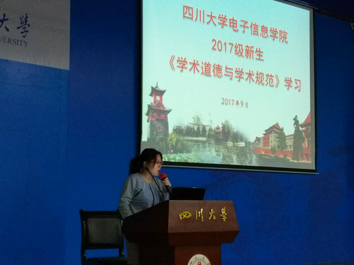 2017年9月13日上午11点30分,bat365在线体育登录在江安校区水上报告厅开展了四川大学《学术道德与学术规范》内容的学习活动。由bat365在线体育登录20117级辅导员陈林老师主持此次活动。活动中,陈林老师根据《学术道德与学术规范》这本书里的内容,带领bat365在线体育登录2017级新生详细了解了学术道德和学术规范方面的知识。bat365在线体育登录历来重视对本科生的创新动手能力的培养,学术成就突出。陈林老师在带领大家学习该书的同时,提醒同学们时刻遵守学术道德与学术规范,做一个文明的学者。这次学习让刚上大学的2017级新生对“学术”这个词有了更深的理解。希望他们努力学习专业知识,在学术道路上收获成绩。