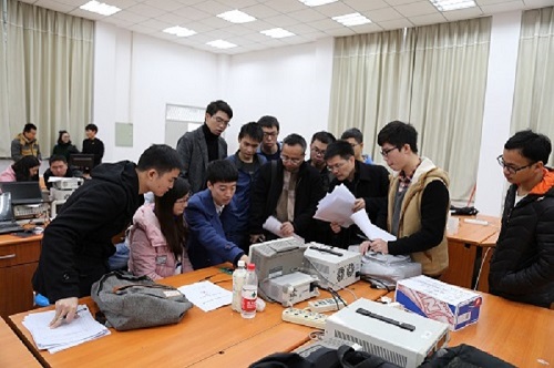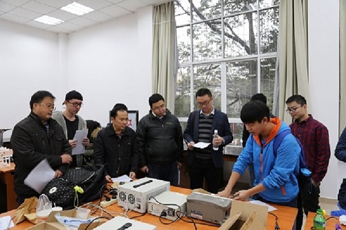此次“锦电杯”科技创新大赛的宣传工作分为青春广场摆摊宣传和网上宣传两个部分,效果良好。大赛得到了热烈响应,广大同学积极报名。通过层层筛选淘汰,十余组优秀作品参加了此次比赛的最终环节。本届比赛包括“智能车锁”、“智能导盲系统”、“电梯轿厢的运行速度和运行位置监测”、“基于生物特征加密与隐私保护的文件加密与云存储”、“‘驴友’救生宝”、“可视化自拍控制系统设计”、“一对多万能无线充电系统”、“射频功率计设计与实现”等共八个课题。上午8:30,比赛正式开始。比赛分为作品调试、答辩测试两个阶段。首先进入的是第一阶段——作品调试阶段,评委老师给予各组选手充足的时间进行作品的调试与细节局部优化,确保各组作品达到最佳状态以进行下一阶段正式测试。接着,答辩与测试阶段开始,参赛作品被分为八个组别,分别对应着各自的参赛课题。参赛选手有序地进行作品答辩和测试,期间,评委老师们分别对作品进行了详细的点评,并依据选手的测试答辩情况与作品整体效果进行作品的评选与打分,鼓励大家再接再厉。随着最后一组测试完成,第十三届“锦电杯”科技创新大赛圆满结束。