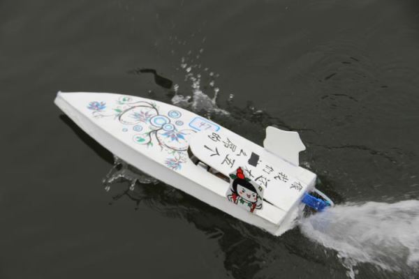 虽然竞速比赛时间是下午2点,但12点刚过,就已有热情高涨的参赛选手前来熟悉赛道,以便根据现场的情况对自己的船只进行调整。下午2点,随着第一支参赛队的船模在景观水道划出漂亮的弧线,船模大赛初赛的竞速环节正式开始。各参赛队的船模均表现不凡,或稳健前进、从容绕过浮标;或极速航行、激起片片水花,在景观水道构成了一道道亮丽的风景,引得在水道两边观看比赛的同学也不禁拍手叫好。整场竞速比赛在主持人的解说和观众们的呐喊加油声中进行得无比顺利,下午6点,所有参赛队完成比赛,船模大赛初赛圆满结束。其中,第104号船模以14.46秒的成绩夺得了竞速环节非专业组的第一名,而第306号船则以17.06秒的成绩成为了专业组的领头羊。