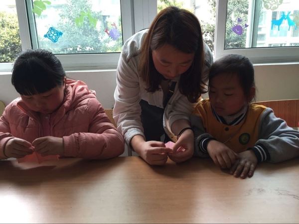 在活动的一开始,志愿者们先一步步带着青少年们一起学折纸的步骤,接下来让青少年们自己再独立回忆一遍折纸的过程,真正学会怎么去折出所教的模型。在折好之后,志愿者们还告诉青少年们可以在自己做的模型上面增添一些花纹和色彩。很快就到了课堂结束的时候,下午17时左右,青少年们都纷纷学会了怎么做“小狗”、“皮卡丘”、“蝴蝶结”等有趣的手工折纸,志愿者们也与青少年空间的老师和青少年们告别,踏上了归途。