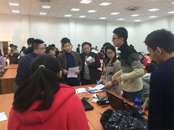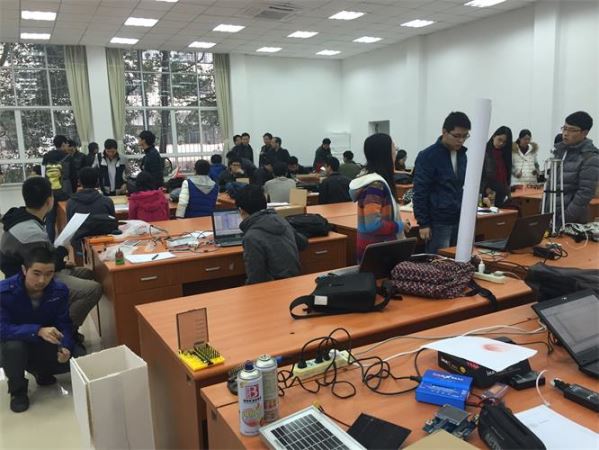 此次“锦电杯”科技创新大赛的宣传工作分为青春广场摆摊宣传和网上宣传两个部分,效果良好。大赛得到了热烈响应,广大同学积极报名。通过层层筛选淘汰,十余组优秀作品参加了此次比赛的最终环节。本届比赛包括“机械式液体透镜的研制”、“光驱动自动喷涂小车”、“环境能量收集器”、“基于无限能量传输的浮空平台”、“均匀透明介质材料构成球体的折射率测量系统”、“无线键盘的安全性分析与研究”、“四旋翼飞行器低空悬停和定位关键技术研究”等共七个课题。上午8:30,比赛正式开始。比赛分为作品调试、答辩测试两个阶段。首先进入的是第一阶段——作品调试阶段,评委老师给予各组选手充足的时间进行作品的调试与细节局部优化,确保各组作品达到最佳状态以进行下一阶段正式测试。接着,答辩与测试阶段开始,参赛作品被分为七个组别,分别对应着各自的参赛课题。参赛选手有序地进行作品答辩和测试,期间,评委老师们分别对作品进行了详细的点评,并依据选手的测试答辩情况与作品整体效果进行作品的评选与打分,鼓励大家再接再厉。随着最后一组测试完成,第十二届“锦电杯”科技创新大赛圆满结束。随后,在12月2至3日,评委老师们根据各参赛作品的现场演示情况及作品报告书进行了细致的评分工作,最终评选出一等奖5组、二等奖6组、三等奖2组以及优胜奖6组。