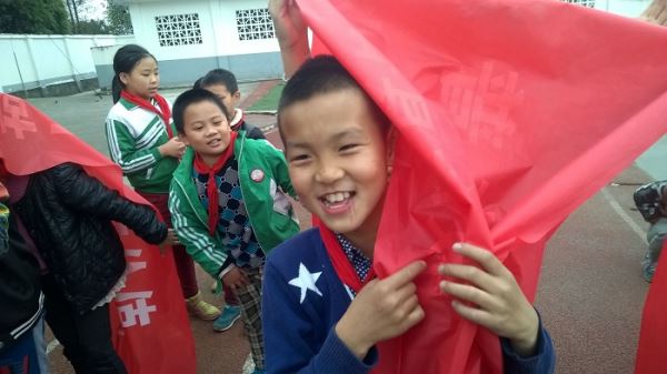 中午12时,志愿者们准时在学校西南门集合,于12时30分左右到达青少年空间做此次活动的准备工作。在14时左右,志愿者们到达目的地双流县永安镇红花小学。在活动开始前,志愿者们在操场做好了布置工作,等待同学们的到来。