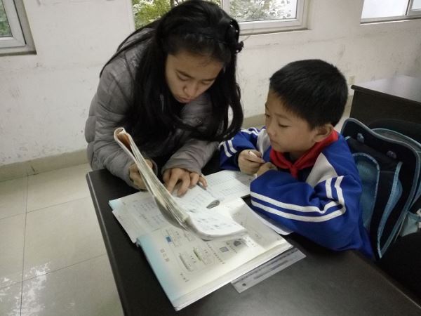 活动中,不时有同学向志愿者询问。遇此情况,志愿者首先引导同学们自主思考,与此同时,志愿者也在认真思考解题的简易方法。在同学思考未果之时,再由志愿者为之解答并介绍解题技巧。当然,在为同学们解疑答惑的过程中,志愿者们也有遇到一些困难。在一些自己不能确定的问题上,志愿者们互相沟通,反复思考,认真地为同学们找出解题方法。在志愿者们的引导和教授下,同学们从最初的满脸疑惑到后来收获知识表现出喜悦之情。乐在青少年,暖在志愿者。欢乐的时光总是短暂的,不经意间,时针已经指到了18时。此时大多数的同学的作业已完成,还有少数的同学在认真做作业。在18点15分,所有同学都已完成作业。志愿者们和老师及同学们告别。
