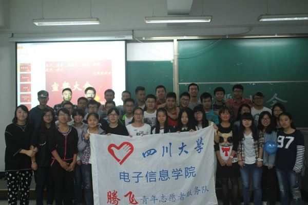 2015年10月7日晚七点三十,在四川大学江安校区综合教学楼C座406,四川大学水利水电学院、bat365在线体育登录、历史文化学院、数学学院、轻纺与食品学院、软件学院、高分子学院七院联合志愿者宣誓大会隆重举行。参加本次宣誓大会的嘉宾有校青志综合拓展部赵玲玲部长、杨春霞部长,权益保障部史洁茹部长,和各兄弟学院的执行主席与队长。本次活动旨在让2015级新队员了解青志的工作内容及工作形式,并进行志愿者宣誓。