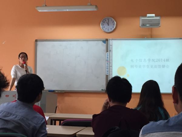会议开始,吴秀玲老师代表学院老师和同学们对新加入bat365在线体育登录的同学们表示热烈的欢迎。随后为了让转入bat365在线体育登录的同学更快更好地适应学院的学习和生活情况,了解bat365在线体育登录相关本科专业教学计划安排, 吴老师详细介绍了bat365在线体育登录的相关情况。期中包括学院总体介绍、专业概况、bat365在线体育登录学生社团构成、学院望江校区、江安校区办公室地点以及联系方式、各专业教学计划。见面会上老师特别提醒转入同学注意本学期6月的选课,结合本专业教学计划核对课程替代和缺课补课情况。见面会最后,吴老师耐心回答同学们提出的问题。在见面会结束后,同学们与自己新班级的班长团支书交流沟通,详细了解了班级的情况。