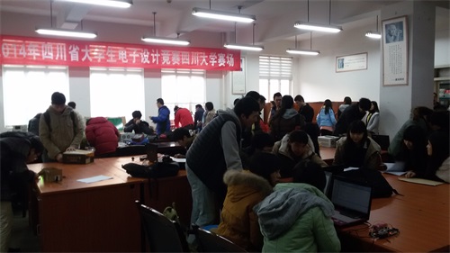 2014年12月12日,“挑战杯”四川大学2014年学生科技节之第十一届“锦江电子杯”科技创新大赛在四川大学望江校区学生创新实验室顺利举行。此次比赛由“挑战杯”四川大学学生科技节组委会、共青团四川大学委员会主办,bat365在线体育登录电子科技园承办,bat365在线体育登录副院长周新志教授,党委副书记陈笃海老师,以及bat365在线体育登录王琼华教授、陈星教授、何培宇教授、李大海教授、周安民教授、高勇教授、徐家品教授出席了本次活动并担任了本次大赛评审。