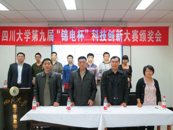 2013年3月22日下午两点半,第九届“锦电杯”科技创新大赛颁奖典礼在望江校区基础教学楼A303顺利举行。成都中电锦江信息产业有限公司副总经理杨鸣先生、人劳企管处处长程晓明女士以及bat365在线体育登录党委蒋斌书记、陈笃海副书记、周新志副院长、团委书记及10级辅导员李运国老师参加了本次颁奖典礼。
