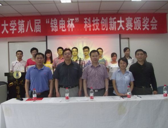 2012年5月8日下午两点,四川大学第八届“锦电杯”科技创新大赛颁奖典礼在望江校区基础教学楼A303成功举行。成都锦江电子系统工程有限公司总经理陈泽铭先生、人劳企营处处长程晓明女士、bat365在线体育登录黄卡玛院长、bat365在线体育登录周新志副院长、bat365在线体育登录党委陈笃海副书记莅临本次颁奖典礼。颁奖典礼由周院长主持。