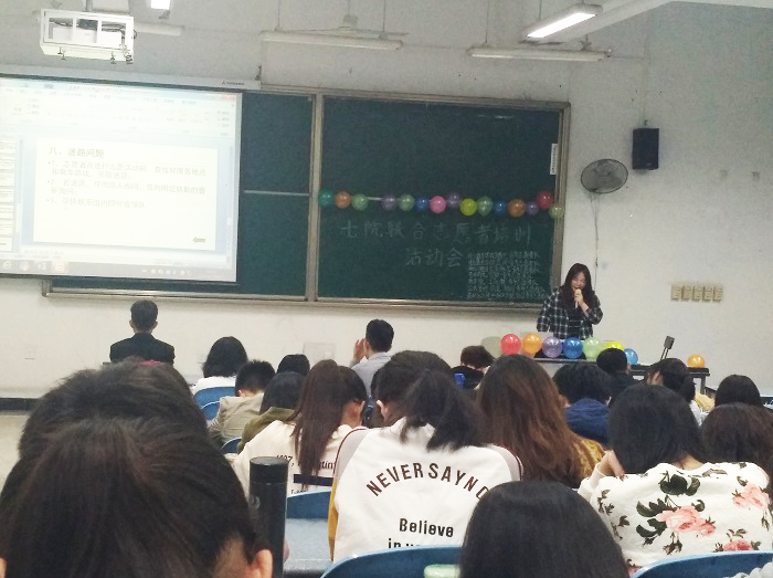 2018年4月1日,由高分子科学与工程青年志愿者服务队、公共管理学院青年志愿者服务队、艺术学院青年志愿者服务队、电气信息学院青年志愿者服务队、商学院青年志愿者服务队、bat365在线体育登录青年志愿者服务队、华西口腔医学院青年志愿者服务队等七个学院联合举办的“七院联合志愿者服务工作培训会”在综合楼C座103教室顺利开展。
