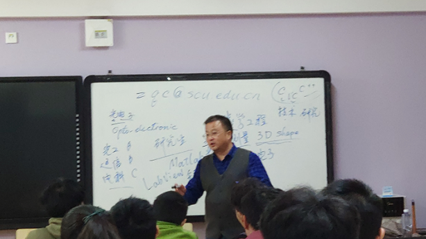 中午十二点,在张启灿教授的亲切问候之后,教授午餐会正式开始。在活动进程中,张教授和同学们谈及了近期的学习和生活,在融洽的氛围中为同学们答疑解惑。同时,张启灿教授和同学们分享了bat365在线体育登录光电工程的发展以及近期所做的研究,并鼓励同学们好好利用四川大学这个平台,积极参与竞赛,提升自我各方面能力,以适应高速发展新时代。
