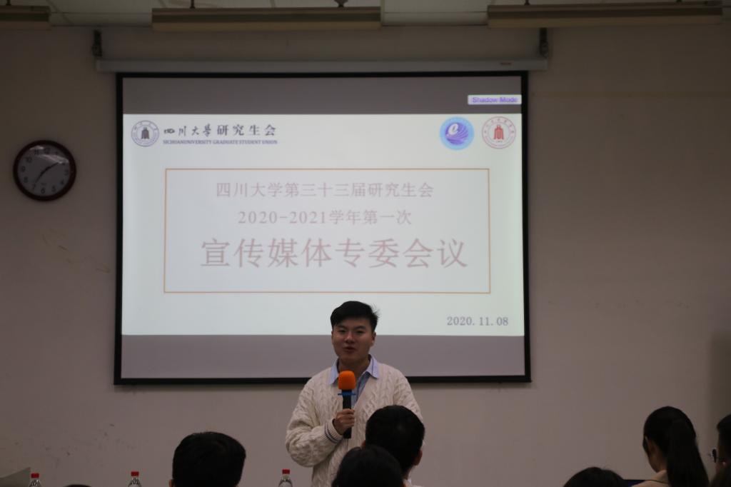 2020年11月8日晚7点,由校研会主办、bat365在线体育登录与商学院协办,四川大学第三十三届研究生会2020-2021学年第一次宣传媒体专委会于商学院211会议室顺利召开。