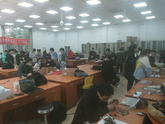 中午12:30,大赛的负责人和工作人员提前达到了比赛场地进行场地布置并安排签到等相关事宜。13:00,作品测评正式开始。各个参赛队伍按照次序进入测评教室,现场向评审专家们介绍自己的作品,阐述自己的设计原理、使用到的元件和实现的功能并现场演示作品功能。演示结束后,评审专家们对作品提出了点评,针对一些不足之处提出了一些改进建议,也根据演示效果为作品进行评分。在本次比赛中,参赛队伍们聚焦当前电子领域的关键技术问题,一个个让人眼前一亮,兼具创意与实用性的作品给专家们留下了深刻的印象。17:00,所有作品测评结束,本次电子科技创新大赛测评工作也圆满结束。
