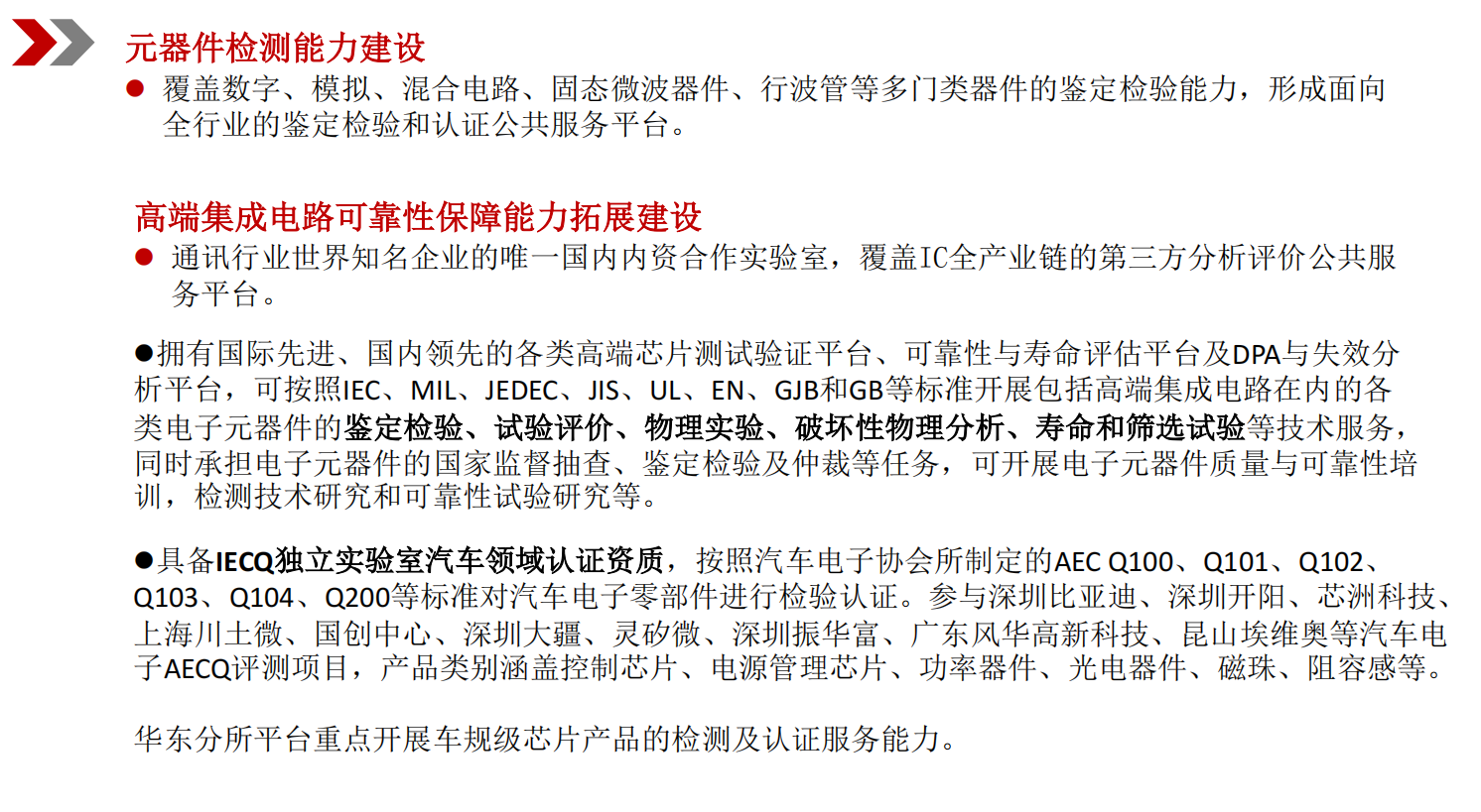 业人才为主体的科研团队。提供从材料到整机、从硬件到软件直至复杂大系统的认证计量、试验检测、分析评价、数据服