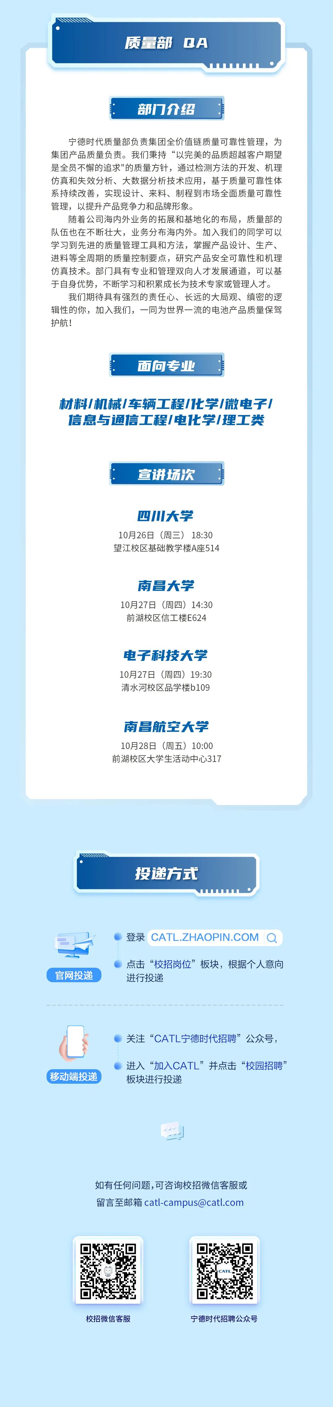 宁德时代2023届秋招—四川大学 质量部&储能解决方案部专场宣讲会