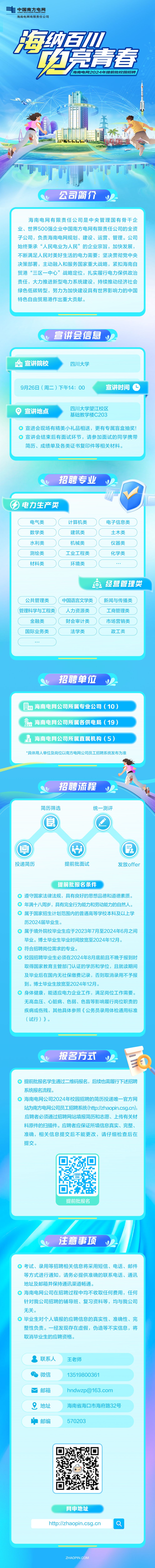 2024届的小伙伴们,海南电网公司将于四川大学