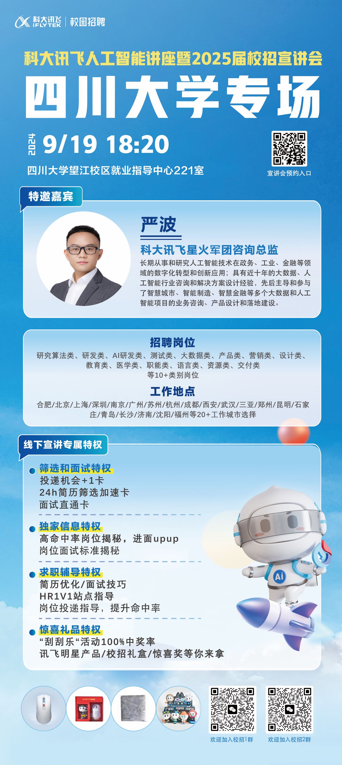优质企业宣讲会推荐-【科大讯飞9月19日川大专场宣讲】