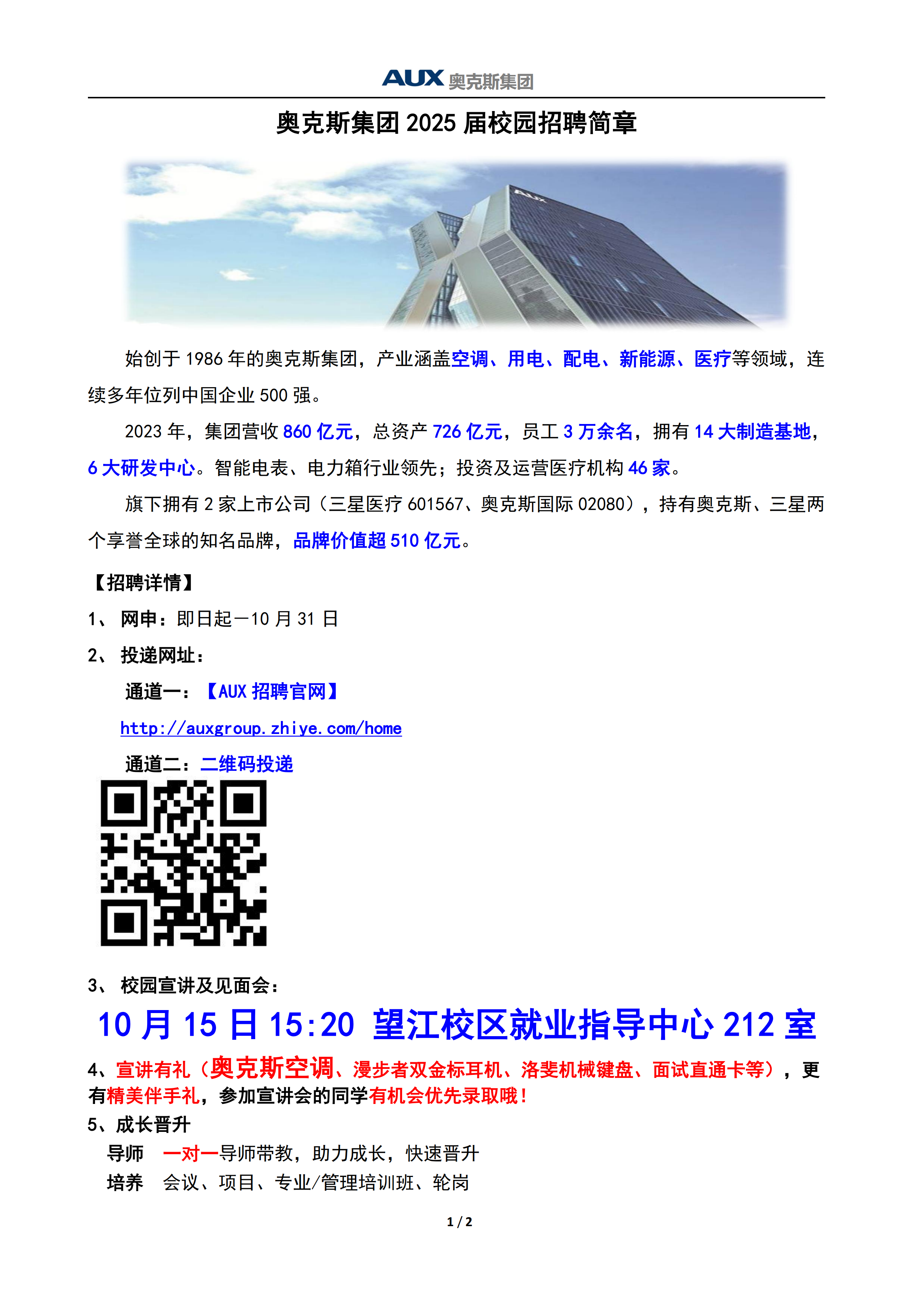 奥克斯集团25届秋招【四川大学】宣讲会来啦!